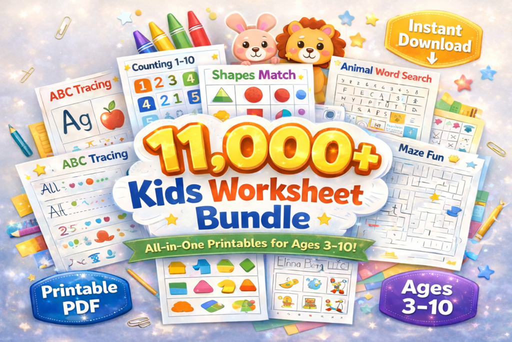 “The Only Kids Worksheet Bundle You’ll Ever Need — 11,000+ Printables for Ages 3–10”